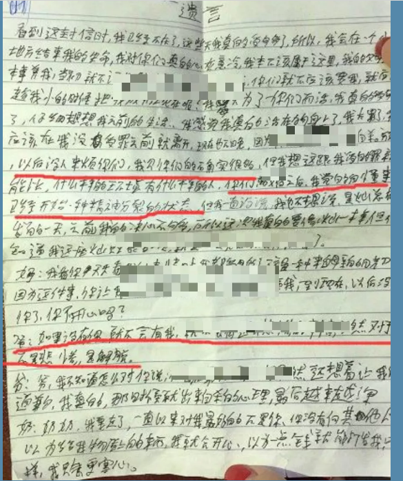 看到这封信时,我已经不在了,这些天我真的受够了,所以我会在一个小地方结束我的生命,我对你们真的心灰意冷,我本不该属于这里……