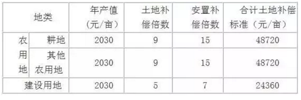 根据《安徽省人民政府关于调整安徽省征地补偿标准的通知》(皖政〔2015〕24号),该用地征收农转用初步按下表确定土地补偿费和安置补助费标准拟定《征收土地方案》上报审批。