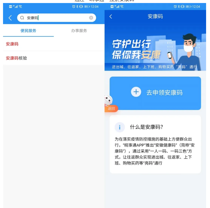 通过“皖事通”搜索安康码